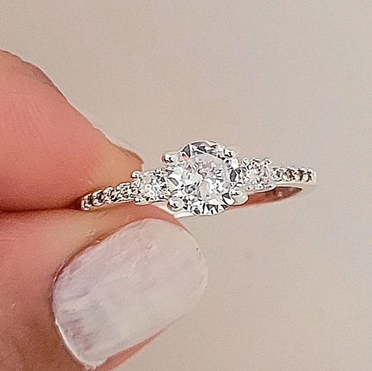 ANILLO DE ACERO BLANCO CUBIC REDONDO CENTRO Y MICROPAVÉ