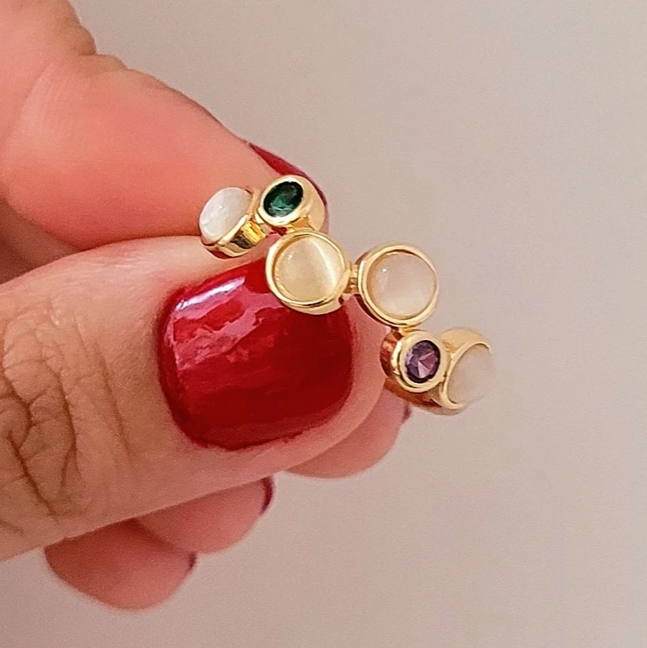 ANILLO DE ACERO DORADO NÁCAR Y CUBICS REDONDOS EN LILA Y VERDE