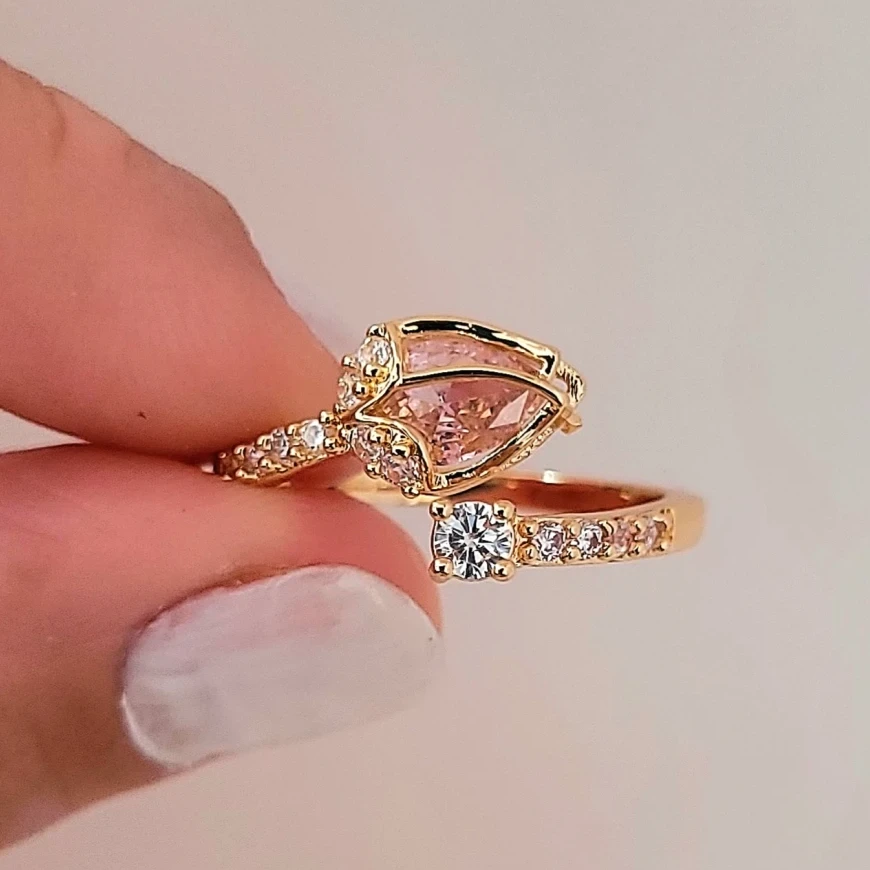 ANILLO DE ACERO DORADO PIMPOLLO CUBIC ROSA Y MICROPAVÉ TALLE 18 REGULABLE