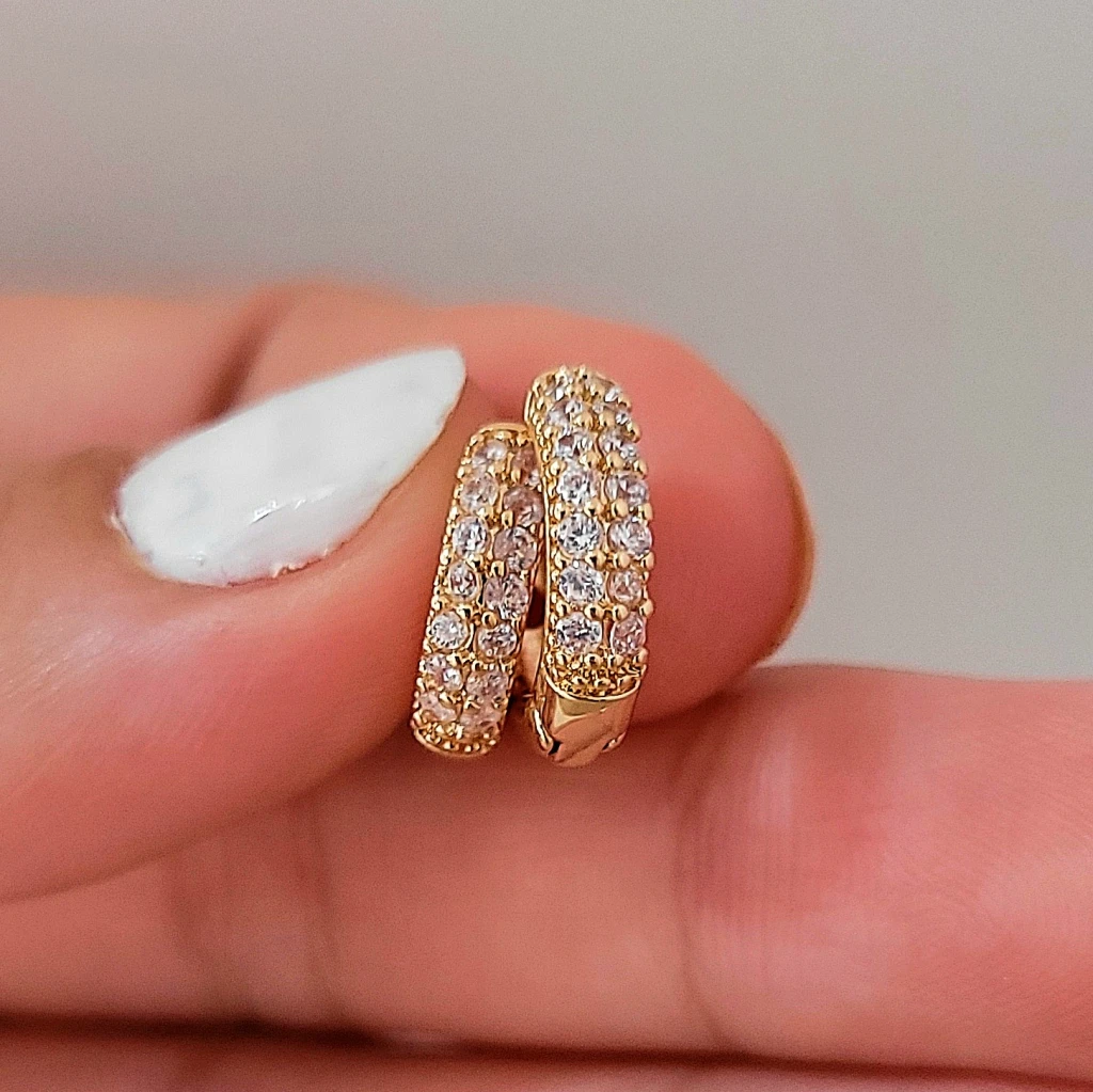 AROS DE ACERO DORADO ARGOLLITAS CON MICROPAVÉ TRANSPARENTE X 13 MM.