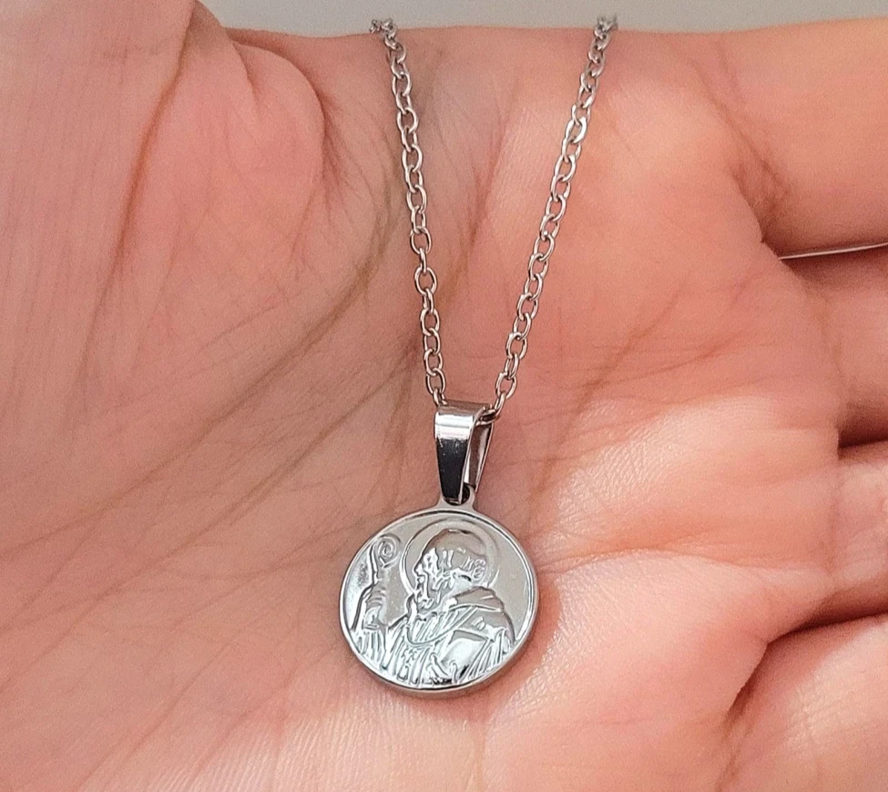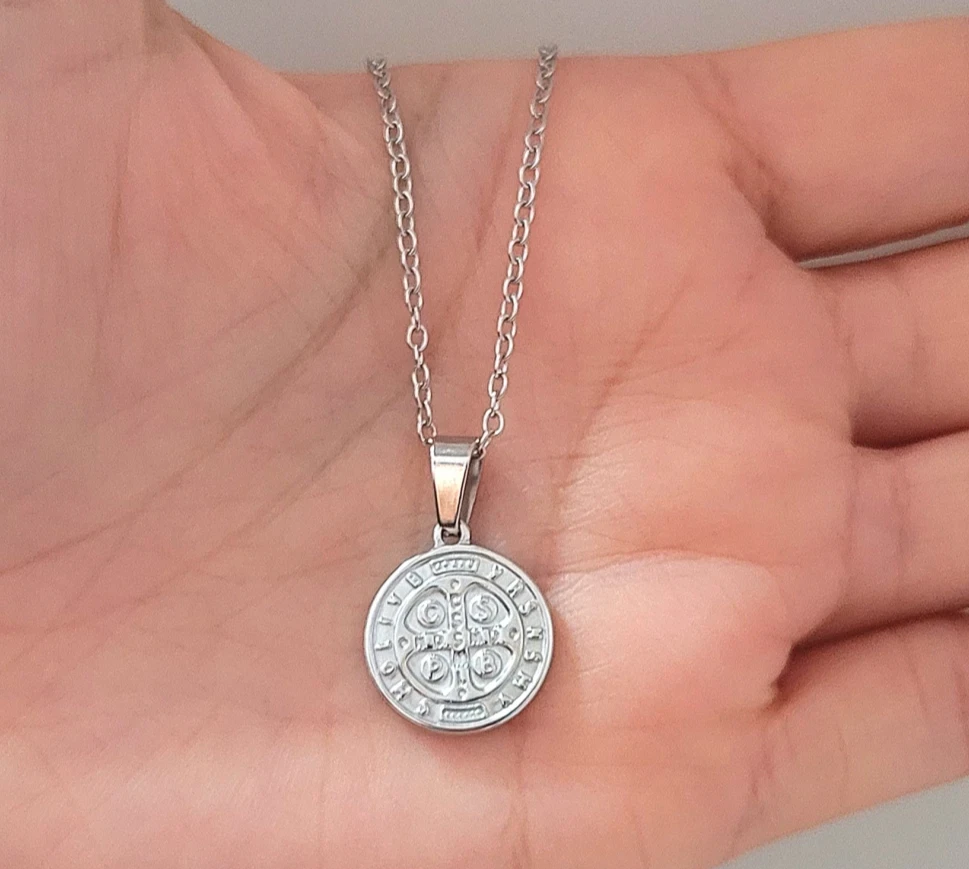 La pulsera de acero quirúrgico San Benito con cristales en tonos lilas de 6 mm, más alargue, es un accesorio elegante y sofisticado. El San Benito es un símbolo de protección y buena suerte.