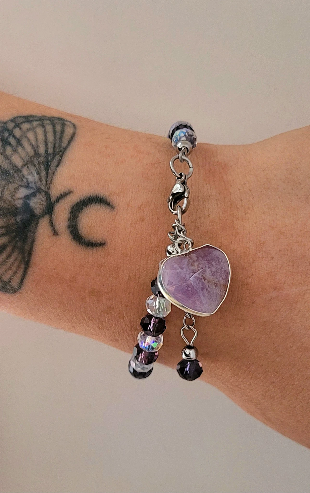 - Conexión espiritual: se asocia con la expansión de la conciencia y la conexión con planos espirituales más elevados. La pulsera, con su diseño de corazón de amatista, no solo es un adorno hermoso, sino también un símbolo de amor propio y conexión espiritual. El alargue permite ajustar su tamaño para adaptarse a diferentes muñecas, haciendo que sea un regalo considerado o un detalle especial para ti mismo.