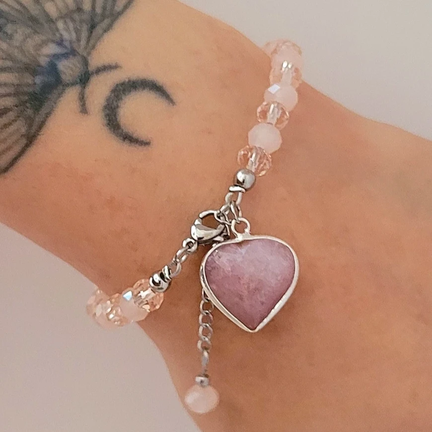 La pulsera de acero quirúrgico con cristales de 6 mm y corazón de piedra cuarzo rojo más alargue es un accesorio elegante y sofisticado. El cuarzo rojo es una piedra conocida por su vitalidad y energía, asociada con la pasión y el amor. Se cree que esta piedra potenciando la confianza y la autoestima de quien la porta. La combinación de acero quirúrgico y cuarzo rojo aporta un toque de modernidad y lujo a cualquier atuendo.